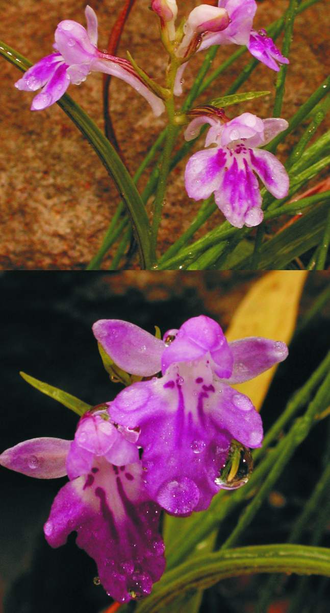 Ein hübscher Begleiter zur Ponerorchis ist Ophiopogon japonicus Kyoto Dwarf, den man in jeder besseren Zoohandlung zur submersen Kultur im Aquarium angeboten bekommt. Er kommt aber auch ohne ständige Nässe bestens zurecht und blüht dann auch.;)Ph.