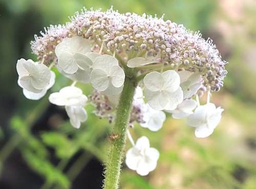 Ist das die Pflanze, die du einmal als Hydrangea robusta eingestellt hast?Für mich sieht die Blüte nach einer typischen Hydrangea sargentiana aus. Aber was heißt hier schon "typisch"?Der Sämling 'Fars' ist jetzt voll erblüht. Ich hoffe, der lockere Blütenstand ist eine stabile Erscheinung.