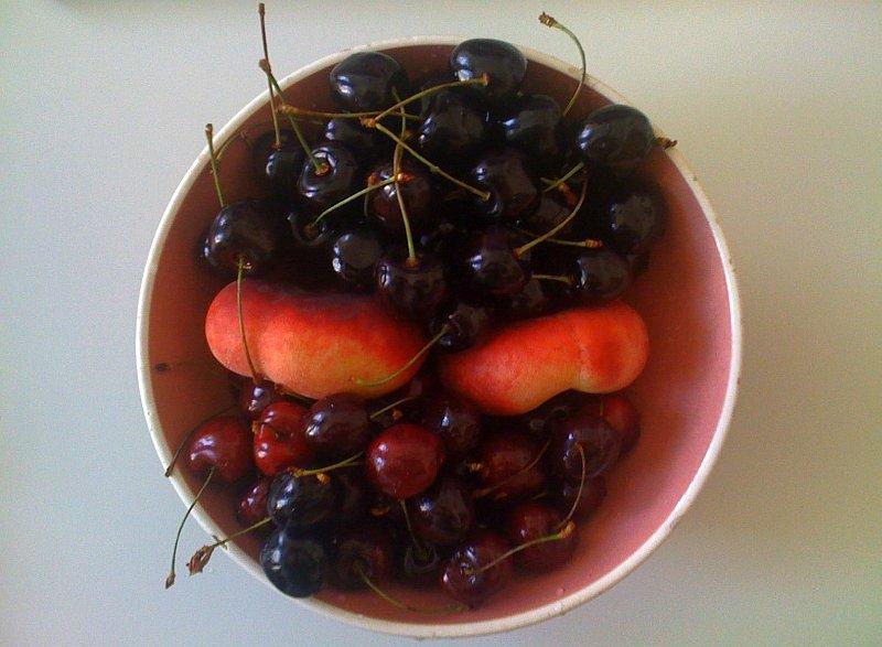 huch! hier gab es heute mittags obst (siehe bild) und abends tzaziki mit brot (ohne bild).