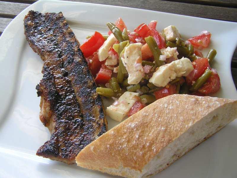 ;D ;D ;D ;D ;Dheute haben wir den grill angeschmissen und schweinebauch gegrillt. dazu gabs ciabatta und einen salat aus tomaten, grünen bohnen, mozzarella und zwiebeln.