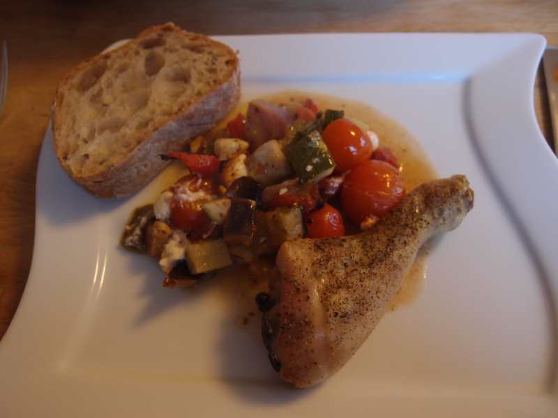 gestern gabs ofengemüse mit kleinen hähnchenkeulen und wurzelbrot