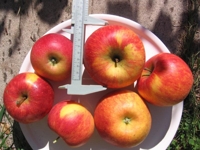 Der Utopia (im Bild unten die drei Äpfel links) ist ein eher kleiner Apfel, eigentlich ein "Kinderapfel" wie Lummerland oder Fantasia, der Freiherr von Hallberg (die drei Äpfel rechts im Bild) hat ein großes Kaliber, wie gute Handelsware.