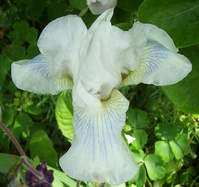 , wurde ich heute morgen nach einer Sorte "außen weiß, innen dunkelblau " gefragt. Weiß mit blauem Bart reicht nicht, es soll eine "umgedrehte Plicata" sein. Gibts das überhaupt in blau/violett und weiß?