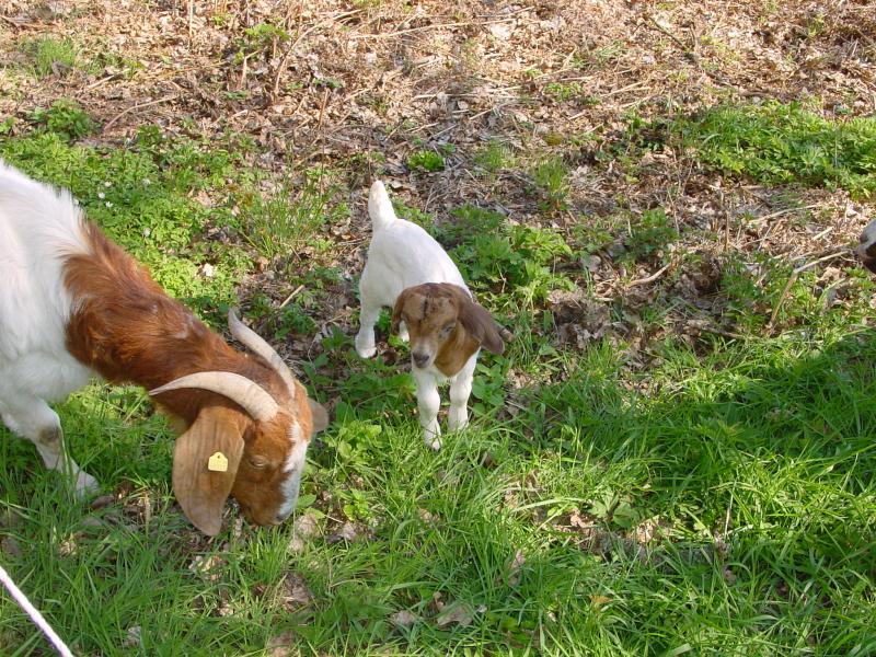 Lilly die Tochter sieht auf den ersten Blick wie ein kleiner Hund aus. Es muß sehr nett sein, die Zicklein bzw. Lämmer von Geburt an zu begleiten.