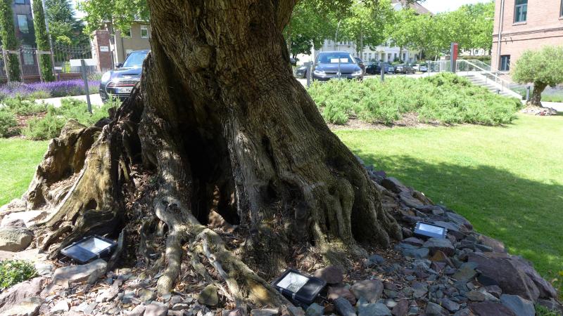 Da es eine eher noble Strasse ist - Kaiser-Wilhelm-Ring - kann es natürlich sein, dass Heizkabel bei der Pflanzung verlegt wurden, aber das der Baum „dekorativ“ eingehaust wird im Vorgarten im Winter kann ich mir nicht wirklich dort vorstellen.