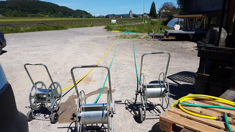 Insgesamt haben wir 5 Wagen mit je 50 Meter Schlauch zur verfügung. Das sollte fürs erste reichen :)