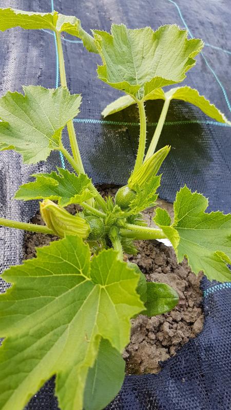 Die Zucchini Tondo di piacenza hat schon einiges angesetzt, ebenso die gelbe Zucchini.