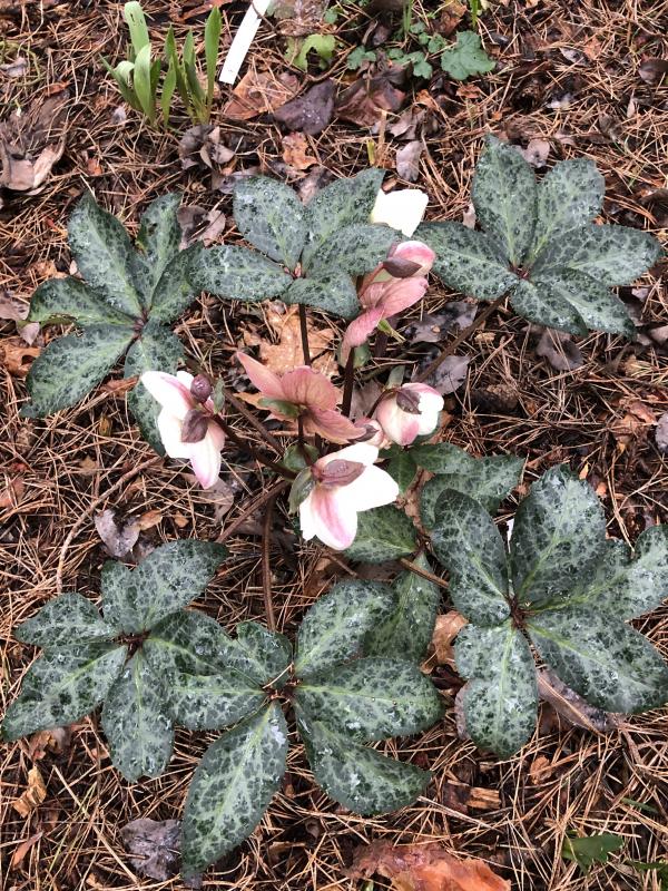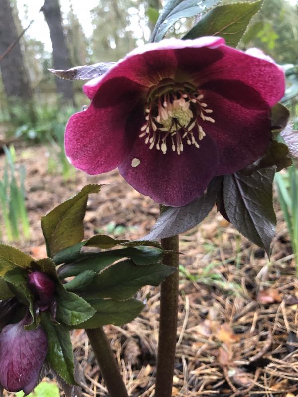 Hier finde ich das Laub viel schöner als die Blüten: Helleborus x ericsmithii 'Winter Moonbeam'