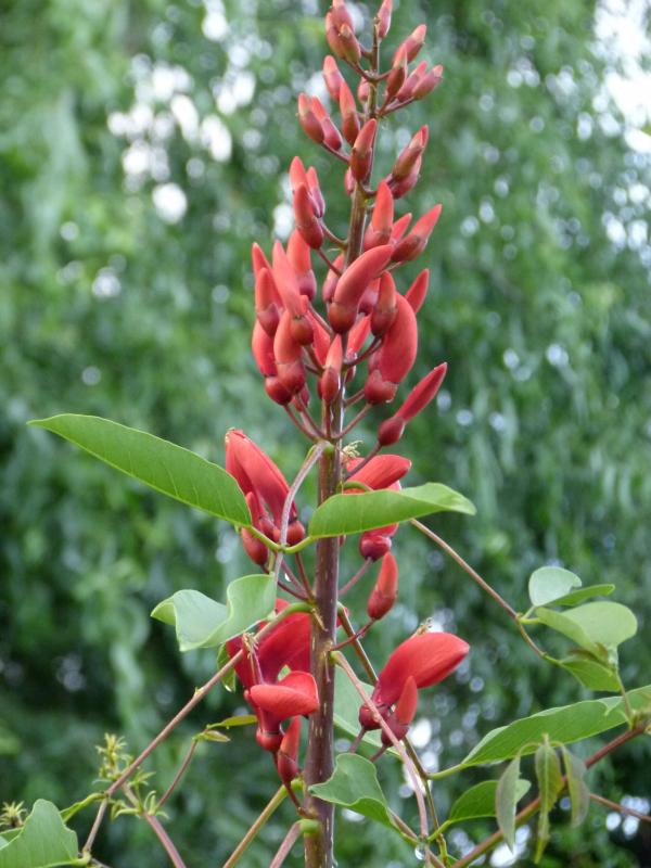 Dieses Jahr ist die Erythria-Blüte spärlich. Das ist erst der zweite Blütentrieb. Hoffentlich kommt da noch ein wenig mehr!