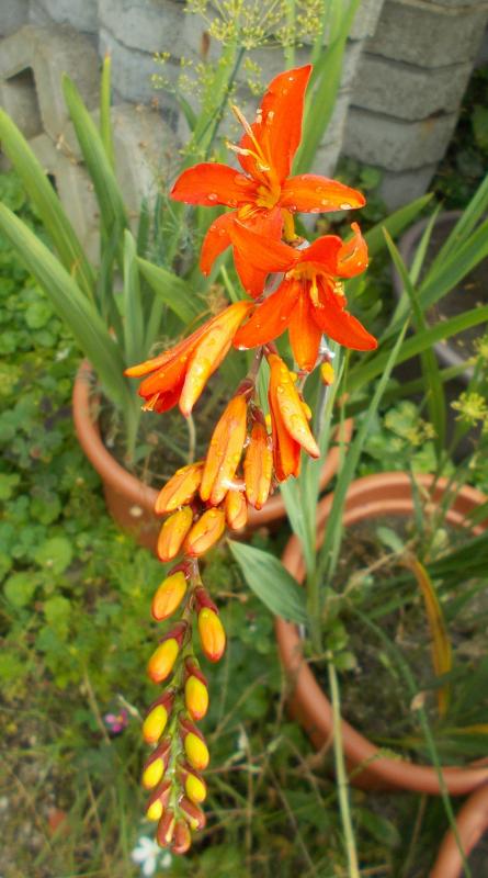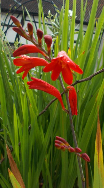 Im Märzwinter 2018 sind alle meine damaligen Crocosmia verstorben (darunter auch 'Tamar Glow', die ich gerade erst im Herbst 2017 auf'm Leipziger Pflanzenmarkt bei pumpot erworben hatte und daher nie blühend gesehen habe :(). 2020 habe ich begonnen, diese Gattungslücke wieder zu füllen, und im Frühjahr fünf Sorten erworben. 'Constanze' hat nicht auszutreiben geruht, die anderen vier haben mir aber viel Freude bereitet, und so sind im Frühjahr 2021 vier weitere Sorten dazugekommen. Zudem habe ich zwei Sorten gesät, von denen 'Lambrook's Gold' bisher nicht zu keimen geruht hat, während ich bei 'Coleton Fishacre' 2022 auf erste Blüten hoffe.