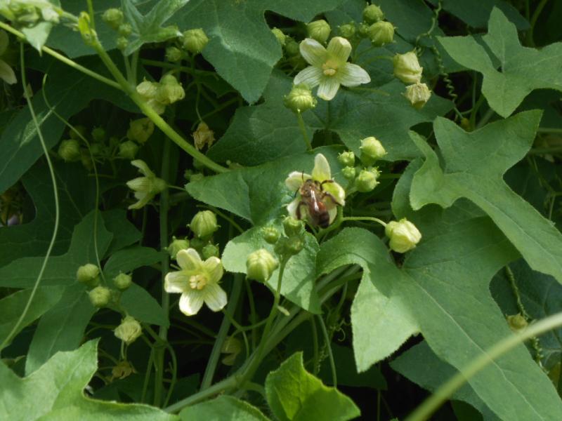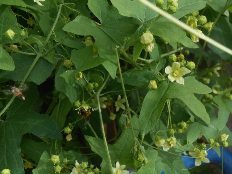 In meinem Zweitgarten gibt es Zaunrüben en masse. Aber ich habe noch nie daran eine Zaunrüben-Sandbiene gesehen. Schade.
