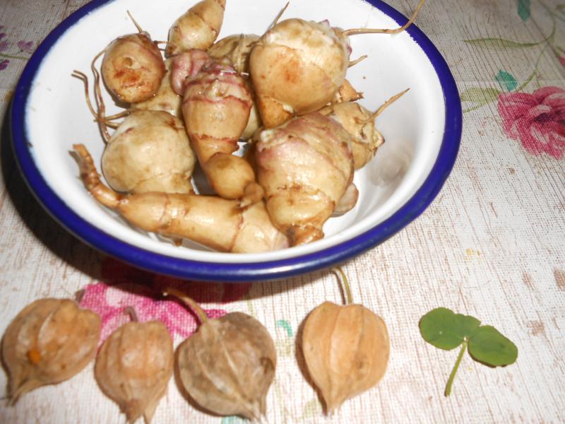 Für den Garten war heute das Wetter nichts, aber beim Gassi gehen kam ich an unserem "Kürbisacker" vorbei und zog ein paar Topinamburstängel heraus. 5 Physalis fand ich auch, eine habe ich gleich verspeist.