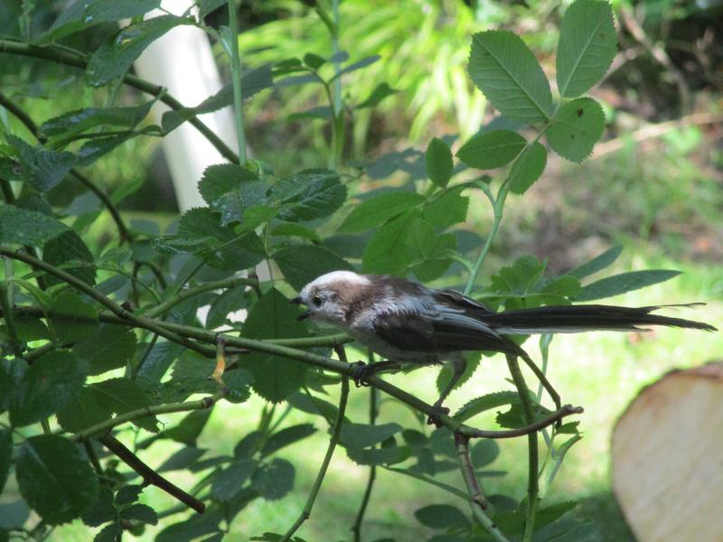 GG hatte heute die super Idee, den Gartenschlauch auf Sprühen zu stellen und neben der Terrasse zu befestigen. So kam auf das danebenliegende Beet ein steter feiner Wassernebel und etwas kühlende Luft auf die Terrasse :). Nicht nur wir genossen das. Auch eine handvoll junge Schwanzmeisen nutzten die Dusche.