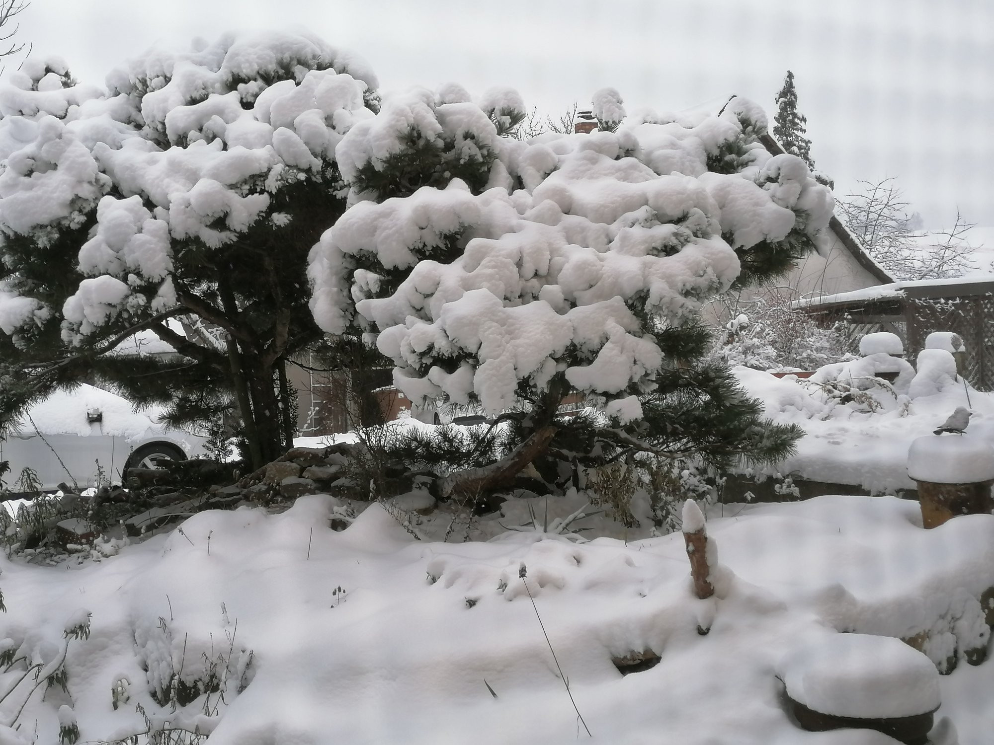 -2°C, seit heute morgen anhaltender Schneefall. (So viel wie bei Mediterraneus liegt bei uns noch nicht, aber Frau Holle arbeitet dran.)