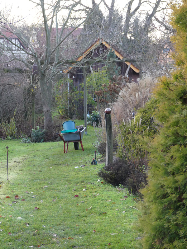 Mir ist bewusst,dass ich mich mit meiner massiven Rückschnittaktion gerade um einige effektvolle Momente bringe.Aber ich muss so handeln,weil ich sonst im Frühjahr nicht alles gleichzeitig bewältigen kann.Ich lasse aber die Gräser natürlich noch stehen und pro Beet immer noch irgendeine monumentale Staudengestalt.Ein Kompromiss eben. ;)