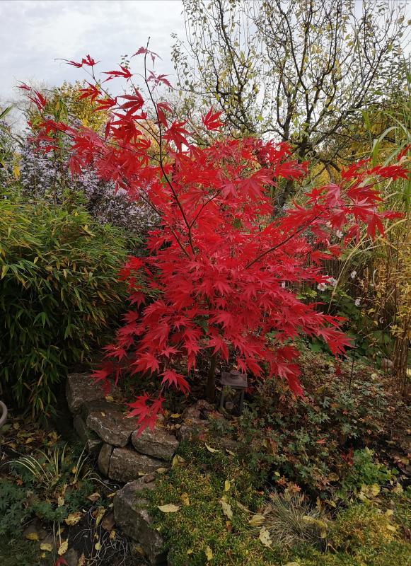 Braune Töne ziehen sich seit dem Spätsommer durch den Garten. Das leuchtende Herbstlaub kommt ganz plötzlich in den letzten Tagen.