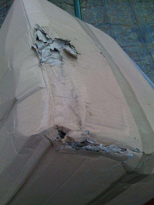 Mit der Post und/oder dem Transportweg weniger. Irgendwer scheint Fußball mit dem Paket gespielt zu haben oder es ist vom Laster gefallen - wer weiß.