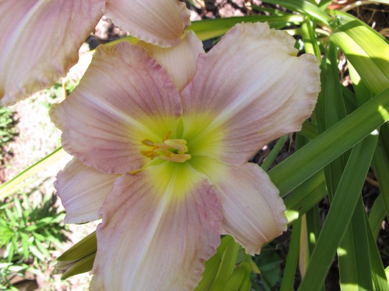 Heute morgen gab es dann überraschenderweise überwiegend mieserable Blüten - diese hier ist zwar ganz hübsch, schwebt aber keine 20 cm über dem Boden