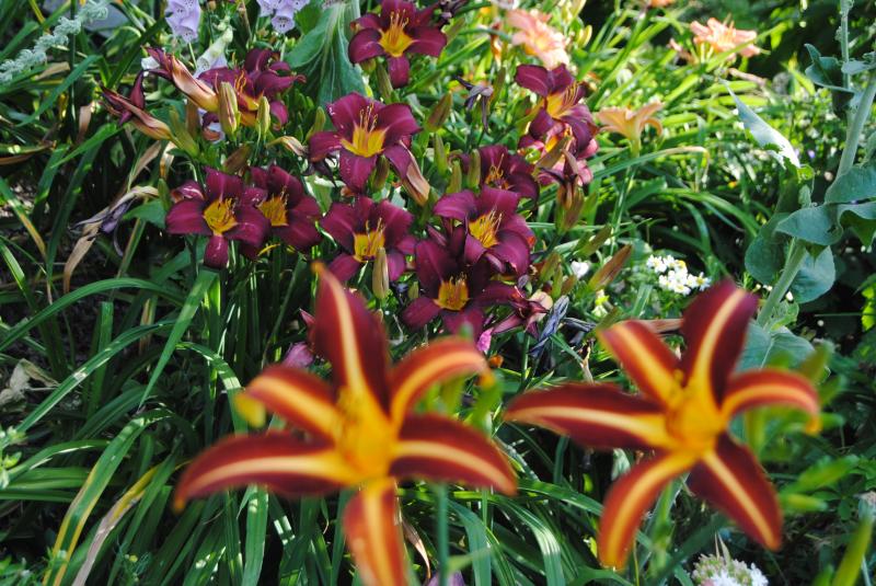 Wir hatten gestern Temperaturen an die 40° und sengenden Sonnenschein - gegen 21 Uhr hätte man meinen können, ich hätte hauptsächlich weiße und blassrosa Taglilien in den Beeten stehen.Unter den registrierten Sorten sahen eigentlich nur die hellen noch gut aus, 'Lola Branham' zB...