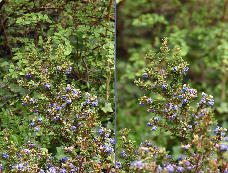 Links Blende 16, rechts Blende 4 (selektive Schärfe, Trennung vom nahen Hintergrund).