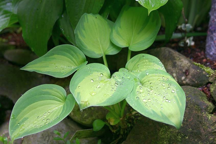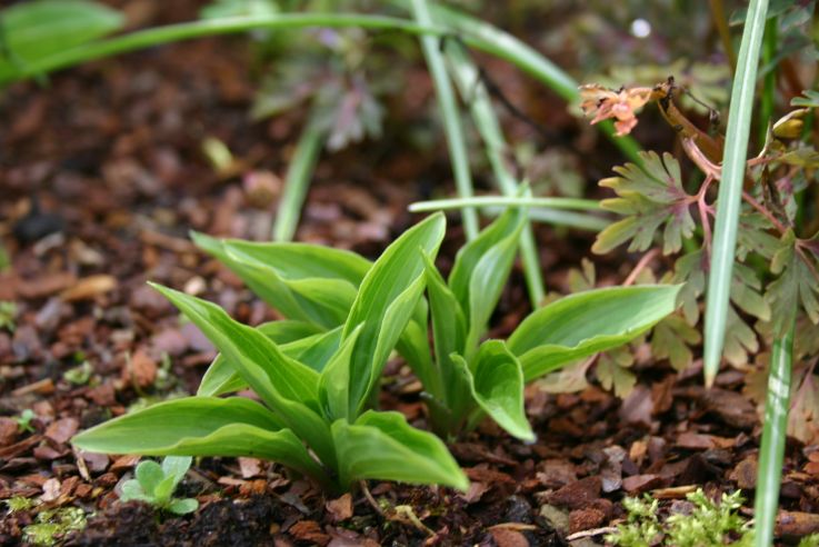 Die aus H.'Candy Hearts' entstandene Hosta 'Olive Branch' würde sich gut vor der H.'Snowden' machen