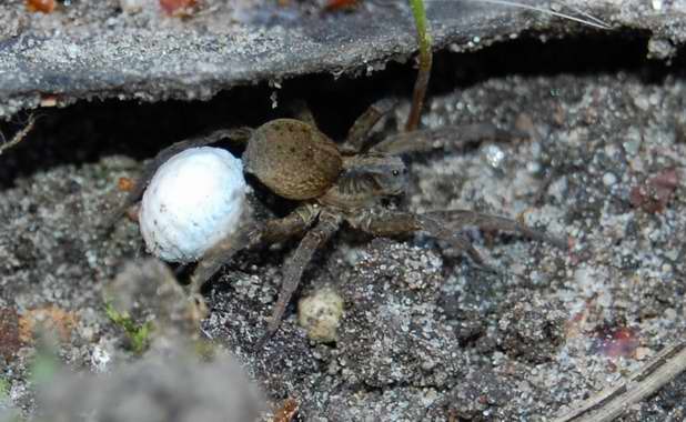 Hier eine andere Spinnenart. Ob es sich da um Männchen und Weibchen handelt? Also anstelle der kleineren Spinne würde ich machen, daß ich wegkomme!!