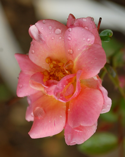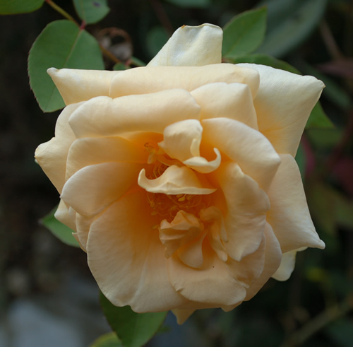 Compassion, die sich einfach nie ganz erholte von den letzten Wintern, die erste Blüte nun!Drei Triebe sehen tief braun aus. Ich nehme an, das sitzt der Frostschaden recht breit drinn in den Trieben.Nun hat sie aber im August endlich einen neuen kräftigen Trieb von unten gebildet, es besteht also noch Hoffnung, dass sie ihre Malaise überwindet! Zuerst muss sie aber noch durch diesen Winter mit dem neuen Trieb.