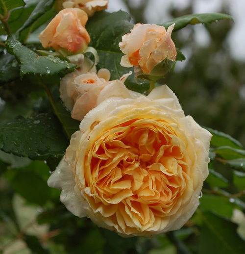 Mir scheint, dass die Blüten bei vielen Englischen Rosen hängen. Leider. - Irgendwo im Katalog schreiben sie auch, dass man bei erhöhter Pflanzung die hängenden Blüten romantisch von unten sehen kann. Das klang für mich, als wüssten sie diese Schwäche selbst.Crown Princesse Margareta, hängt über sich selber herunter, sie hat viel zu lange Triebe gemacht. Wehret den Anfängen - nächstes Jahr werde ich sie gleich am Anfang, wenn sie in die Höhe schiesst, in der Hälfte mit der Schere stoppen!