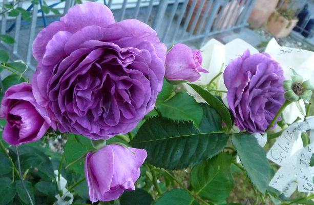 und die Novalis hat manchmal einen blaugrauen Schimmer, bei einer Blüte wo ich nicht drankomme mehr noch als bei dieser. Sie wächst ziemlich schmal und hoch, aber immerhin sie wächst. Und das Laub ist gesund. Der Duft ist schwach.