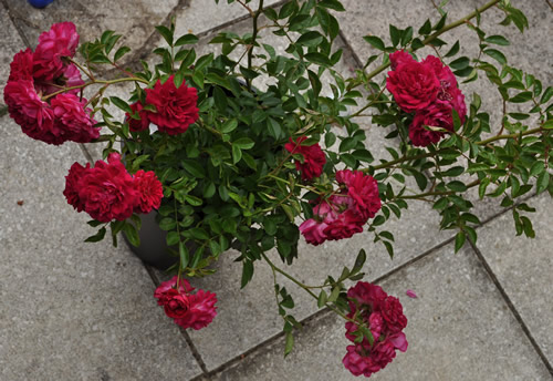 Die Blüten sind eher noch mit einem Blautick, farblich. Hier die ganze Rose: