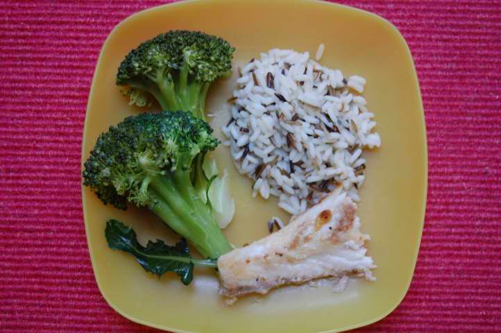 Heute gab es Victoriaseebarsch mit Broccoli und Reis.