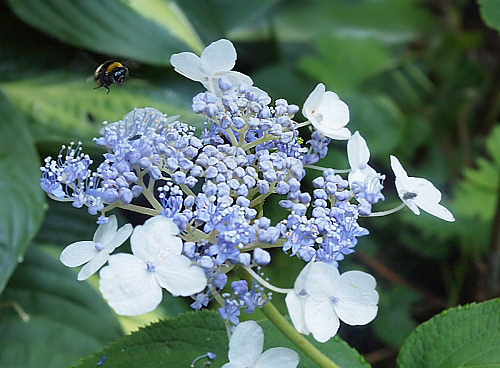 das hast du sehr schön gesagt!Da ich ja nun direkt angesprochen wurde, muss ich meinen Senf dazu geben. ;)Hier scheint Hydrangea aspera 'Macrophylla' zur Zeit Hummeln und Schwebfliegen geradezu magisch anzuziehen. Vorhin sah ich einen Admiral eine Blüte von 'Annabelle' anfliegen. Auch diese ballförmige Hortensie hat zwischen den sterilen Schaublüten einzelne fertile Blüten. Ob er eine davon gefunden hat, vermag ich aber nicht betätigen. ::)Aber wer seinen Garten auch mit einheimischen Wildpflanzen ausstattet und hier und da einmal eine Brennnessel stehen lassen kann, wo sie nicht stört, darf nach meiner Meinung auch eine ökologisch weniger wertvolle Ballhortensie pflanzen.Die Vielfalt schafft eine halbwegs intakte Natur. Und wenn die Ballhortensie nur dazu dient, dem Igel ein Tagesversteck zu schaffen und die ungeliebte Scheinzypresse die einzig katzensichere Nistmöglichkeit im Garten zu bieten, erfüllen sie auch noch ihren Zweck.