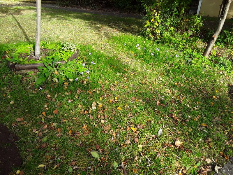 Baumscheibe ( im Innenhof ) mit Arum italicum und Primeln. Die Galanthus,Eranthis und Krokusse brauchen wohl noch 6 Wochen. Schnee und Frost ist schon angekündigt.