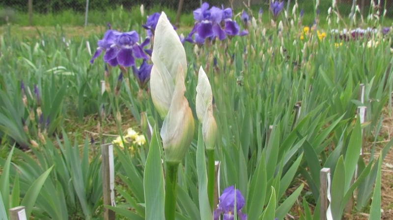 Überhaupt Iris pallida, manchmal mag man gar nicht glauben, dass aus diesen vertrocknet erscheinenden Knospen noch was rauskommt, ist dann aber doch so.