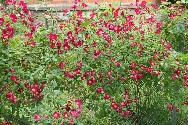 'Mr.Nickelby' von Scarman ,soll ein Rambler sein.Ich halte sie als Großstrauch.Sie wird hier ein wenig vernachlässigt und nicht ausgeputzt,weshalb sie früh dann immer Hagebutten ansetzt und trotzdem versucht,noch ein paar Blühtriebe im Herbst zu schieben.