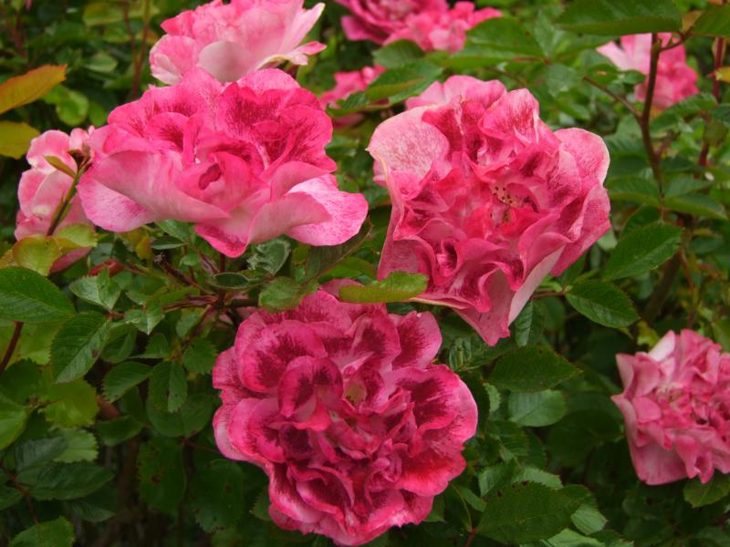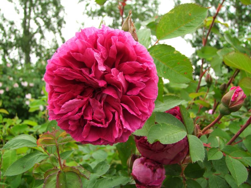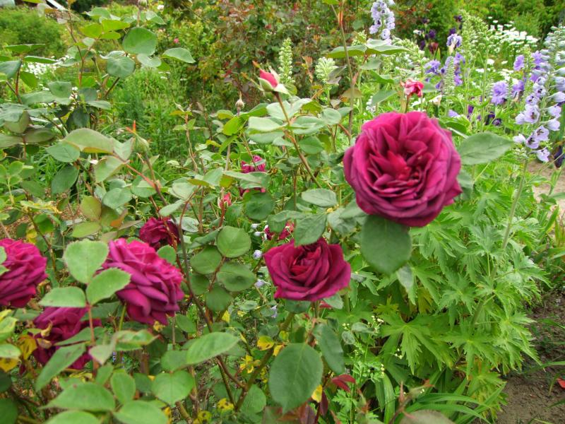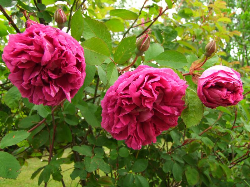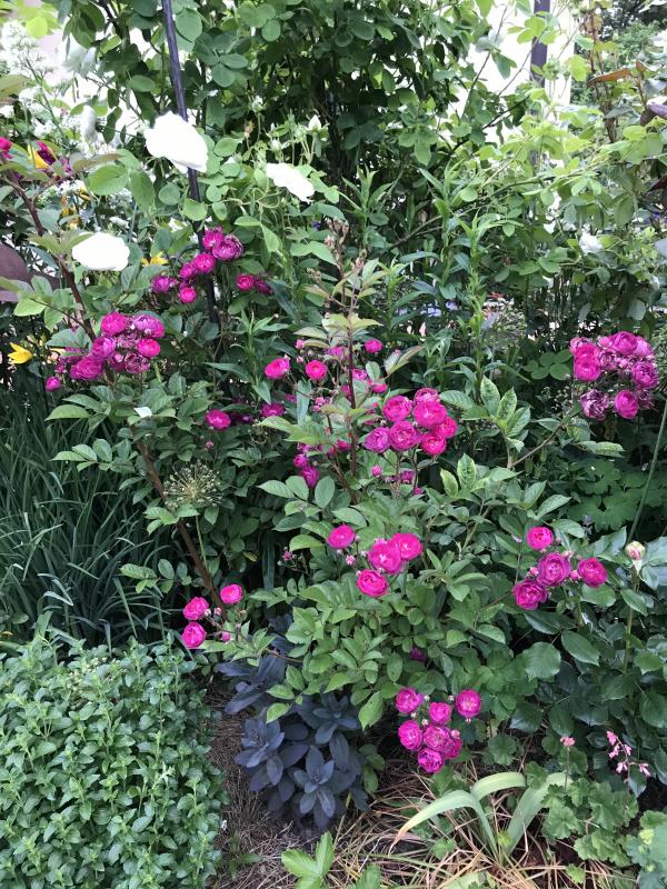 Leider sind bei Mme Boll die neuen Austriebe oft zu schwach die schweren Blüten zu halten.