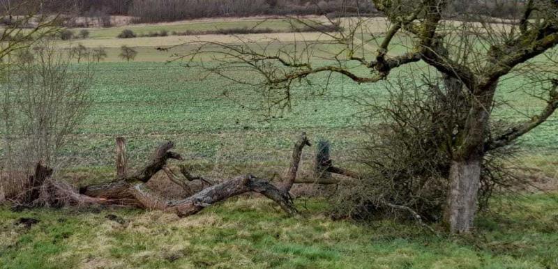 Sonst lief es erfreulich heute. Ich musste nur abzäunen. Tja. WEnn man beim Aufzäunen flickt und beim Abzäunen auch - ist es Winter. Schon während des Abzäunens hatte ich die Schere dabei und schnippelte mal hier mal da an den Obstbäumen. Gut um im Hang zu kaschieren, dass ich derzeit etwas mopsig bin ;D Am Ende hatte ich noch 20 Minuten vor der Dämmerung. Ach weißt... die Bäume gehen mich eigentlich nichts an. Aber Zuschauen wie sie da ungeschnitten rumstehen - ist auch doof. Also habe ich mir den Obersten geschnappt und drauf los geschnitten. Die Bäume sind ja schon recht alt. Stammen aus den 80er Jahren. Da ist jedes Ansetzen der Astschere schon ein Gewinn. Vielleicht auch gerade was den heran sausenden Sturm betrifft. Eine gute Tat am Tag. ;)