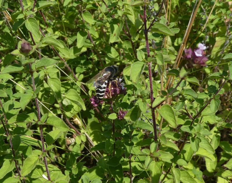Mein Oregano ist momentan ein sehr beliebter Ort für Schmetterlinge, Wespen und Bienen aller möglichen Arten. Ich hab mich bei den größeren und daher etwas leichteren Wespen und Bienen mal an Fotos und Bestimmung versucht.