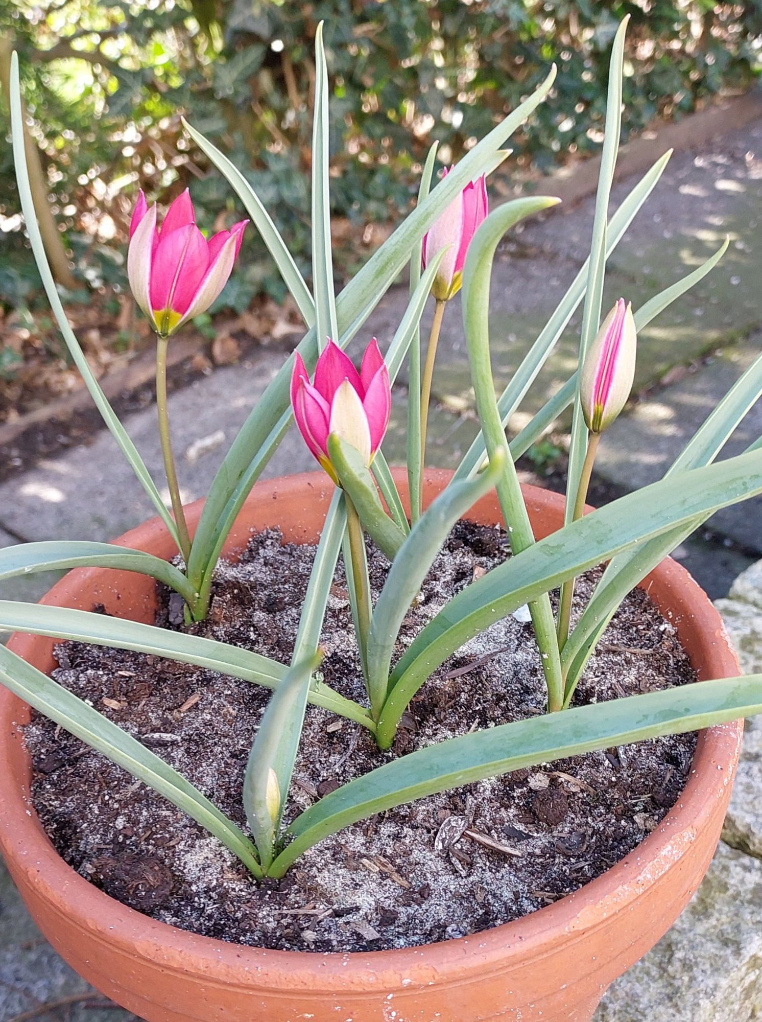 Was süssses kleines, das den Winter überlebt hat. Das Schildchen allerdings nicht. Die mini Tulpe ist Persian Pearl.