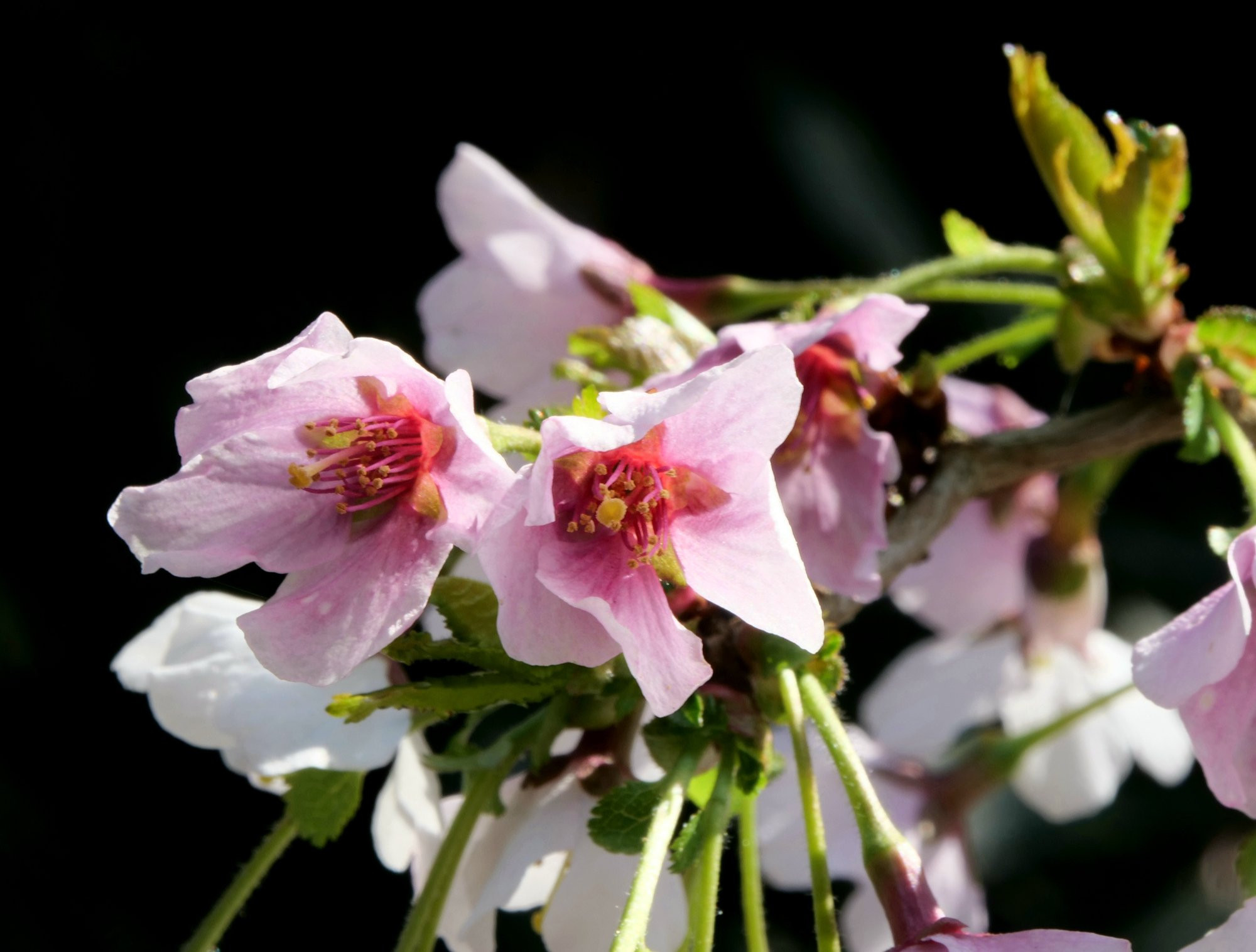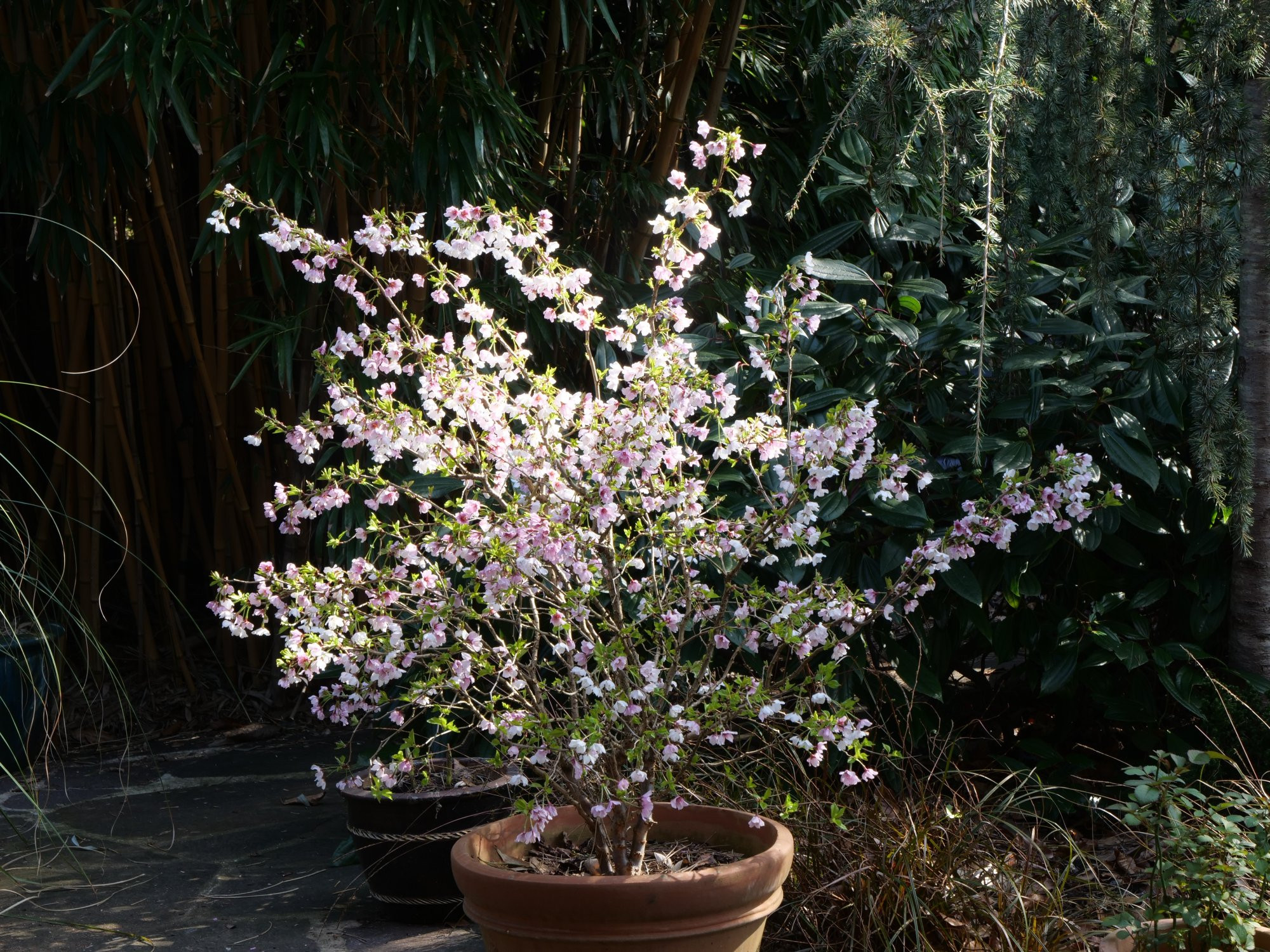 Prunus incisa kojou-no-mai war vor wenigen Tagen noch strahlend weiß, jetzt hat die rosa Phase begonnen.