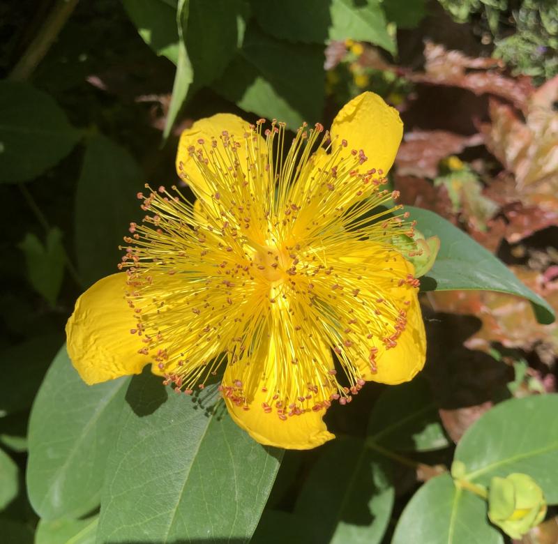 Hypericum (Sorte?) hab ich vor einigen Jahren an diesem Standort entfernt, weil es so gar nicht hinpasste - jetzt hat es sich wieder durchgesetzt und darf bleiben.