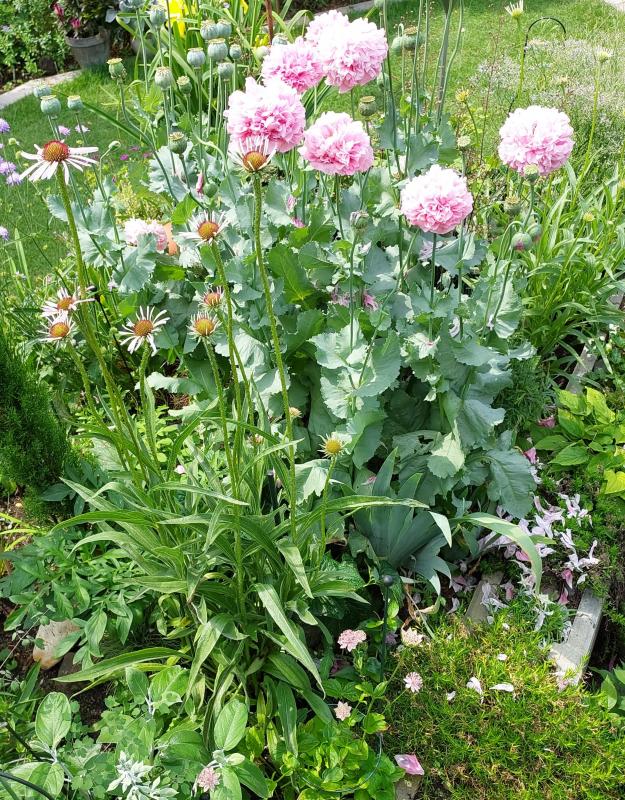 Wie hast du denn das hinbekommen, dass gerade der rosa gefüllte Mohn dort blüht? Sehr hübsche Kombination!