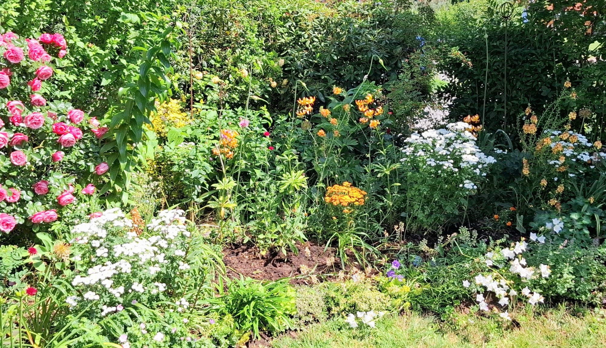 Mein Vorgartenbeet ist im Umbau. Derzeit eine Zwischenphase mit dem Versuch einer (Kreisch)kombi in Rosa und Apricot ... *ich will mehr Orange, aber die rosa Rosen sind fest etabliert*