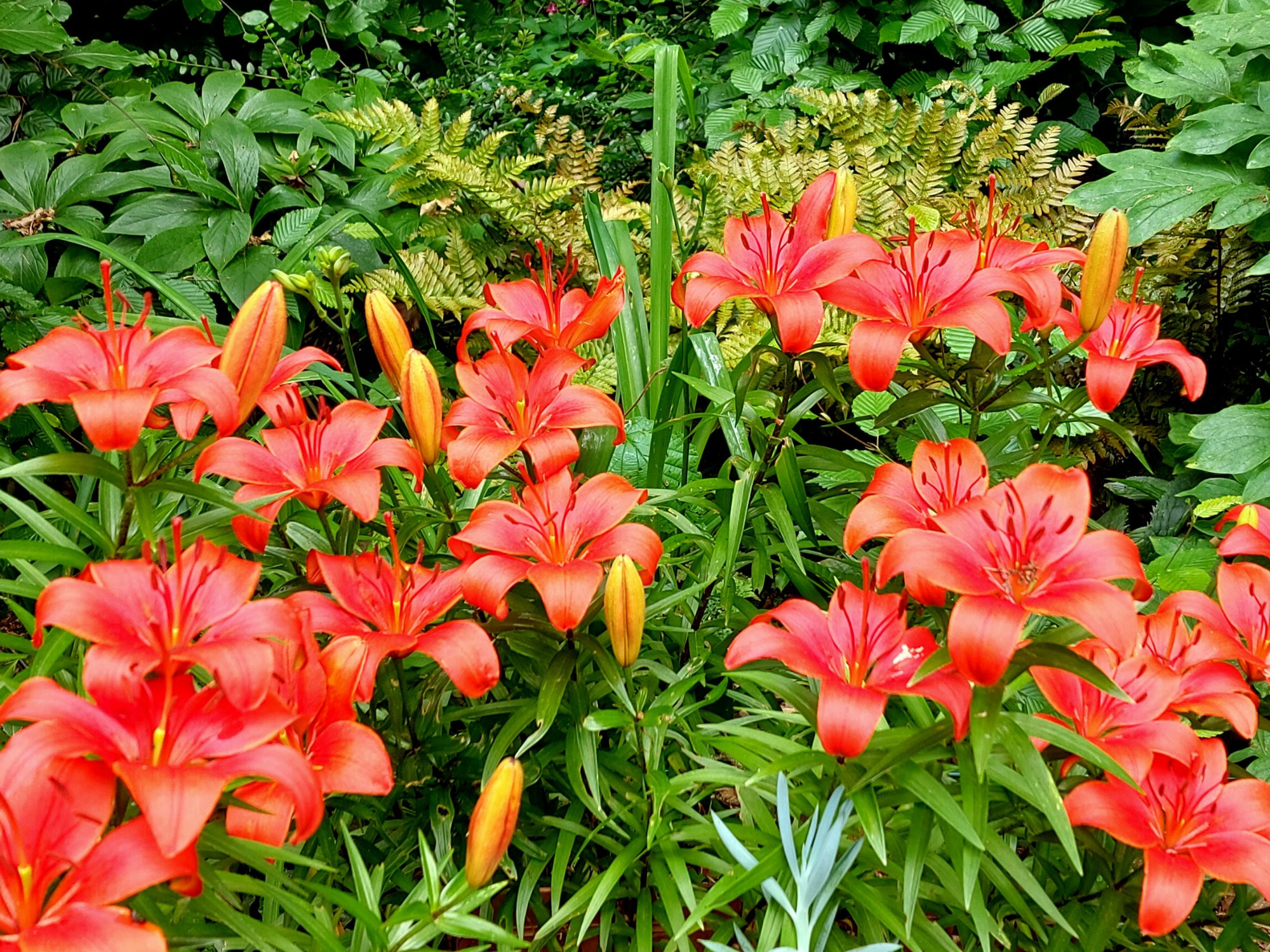 Lilium bulbiferum, Feuer-Lilie. Dieses Jahr nach Umpflanzaktion und Schneckenstörfeuer deutlich weniger Blüten - das Foto hier im Anhang ist vom letzten Jahr.Veilchen-im-Moose hat geschrieben: ↑11. Jun 2025, 21:46 Polluxverde, in deinen Beeten geht es immer bunt und üppig zu. Das mag ich sehr. Was für eine Lilie zeigst du auf dem ersten Foto?
