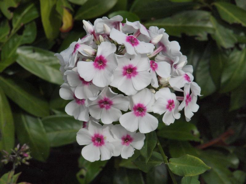 Und das ist Hera von letztem Jahr, z. Zt. erst eine Blüte offen. Wg. Doldenform von beiden kann ich schlecht was sagen, viele meiner Phloxe in diesem Jahr haben viel kleinere Dolden als im letzten.Hera