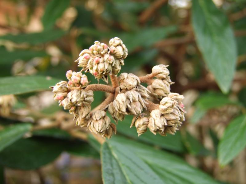 Die Blüten vom Schneeball sind vorerst nur zu erahnen.
