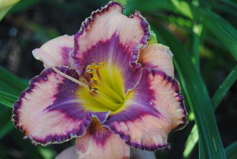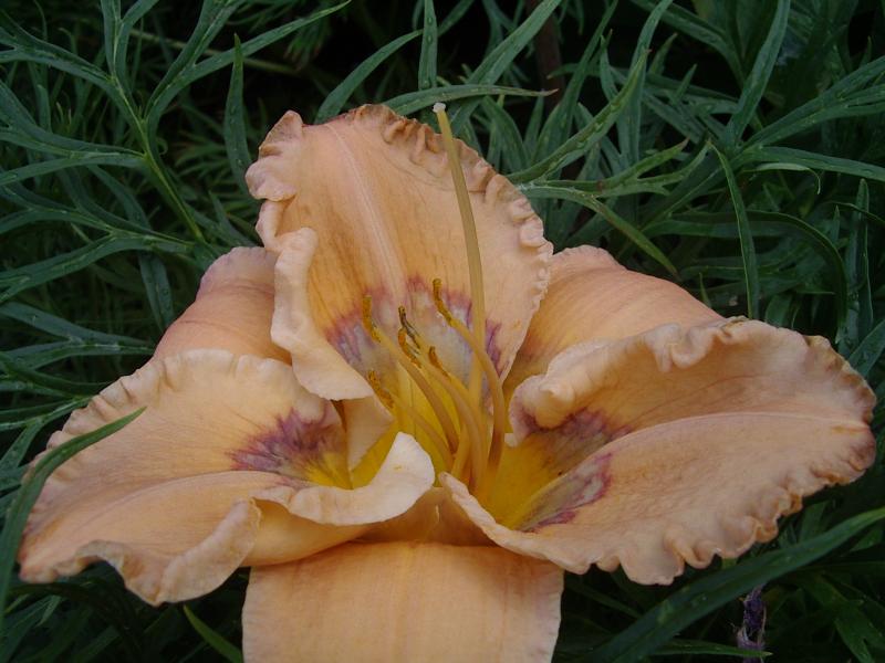 Smlg aus Isle Of Dreams X Delta Blues, Wobei die Digi die Intensität der Farben nicht wiedergibt. Die Grundfarbe der Blüte ist tief Aprikose, im Auge kräftig blau violette Töne - ein krasser Farbkontrast