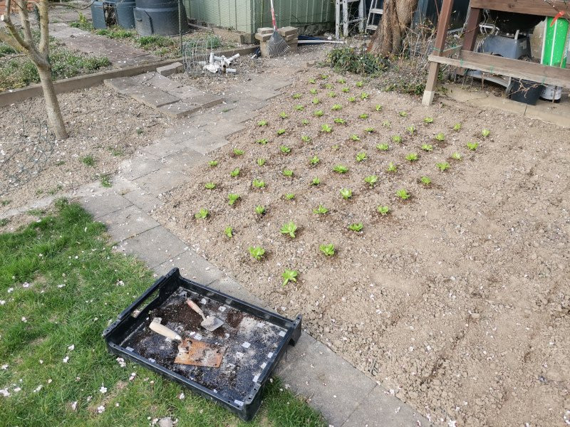 Ich habe noch nicht viel gemacht, Salat gesät und ein paar rote Kopfsalatpflanzen gesetzt. Dachte, in den feuchten Boden, das geht. Aber kein Regen und gleich waren die Pflanzen schlapp. Also gegossen. Im März