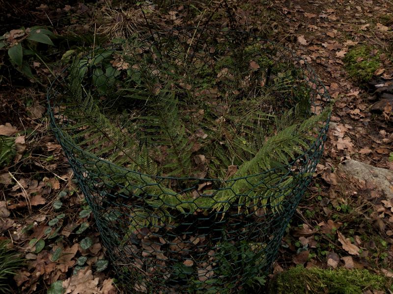 ähm, ja – ein paar haben immerhin eine halbhohe kaninchendrahtumhegung, mit geschlossenen zylindern habe ich schlechte erfahrungen gemacht, vom bastelaufwand und der ästhetik einmal ganz abgesehen. und körbe dürften nicht stabiler oder ansehnlicher sein... aber kannst du dir das wirklich vorstellen, überall in einem wildhaften waldgarten kaninchendrahtkörbe?!