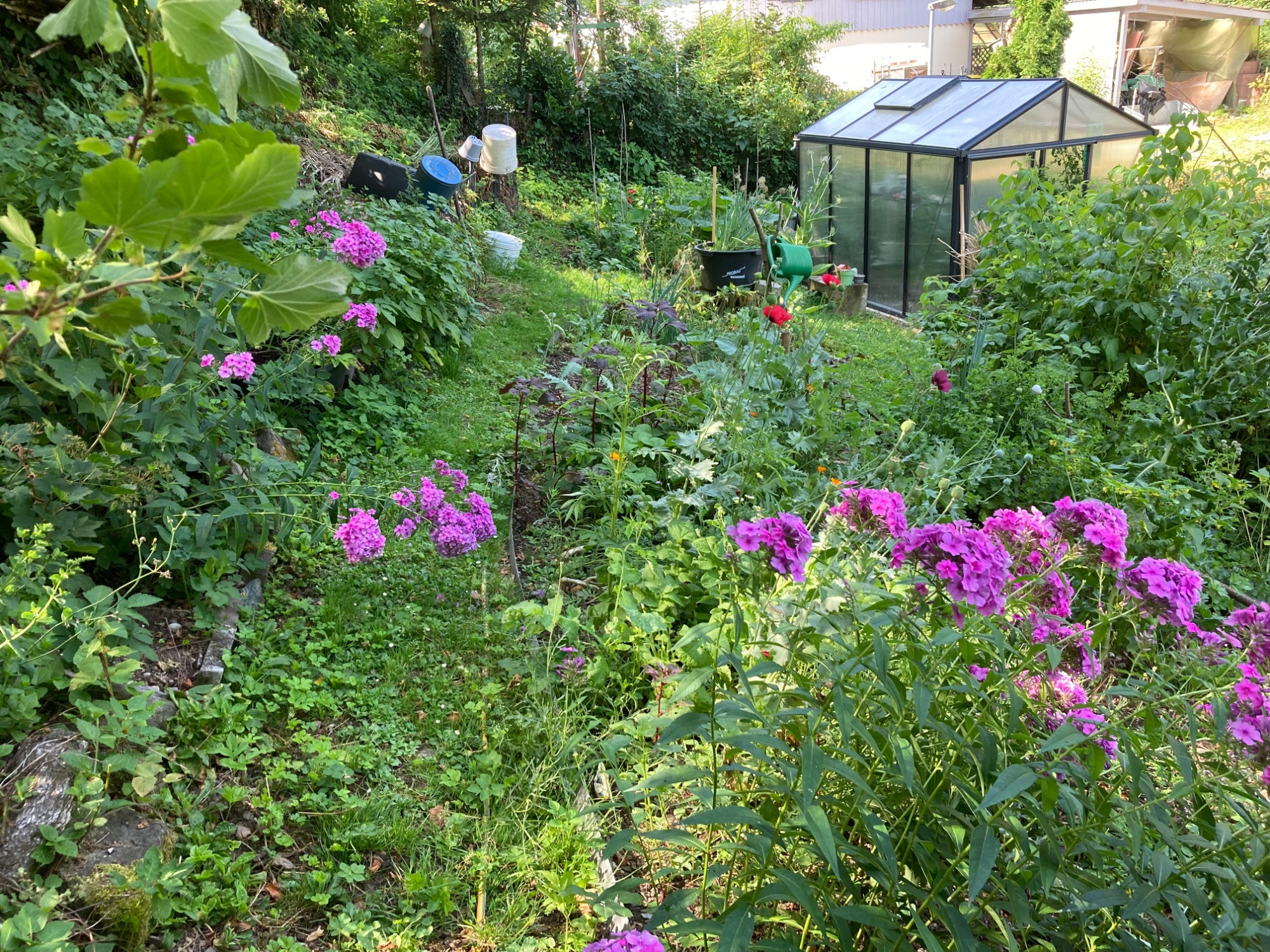 In diesem Garten(Auf unserem Grund steht seit mindestens 1600 ein Haus.Unseres wurde vor ca 100 Jahren erbaut)sind alle Farben vertreten.